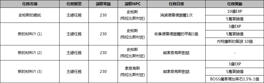 ※ 上述主線任務為連續任務,需要完成前一個任務才能領取後一個任務。