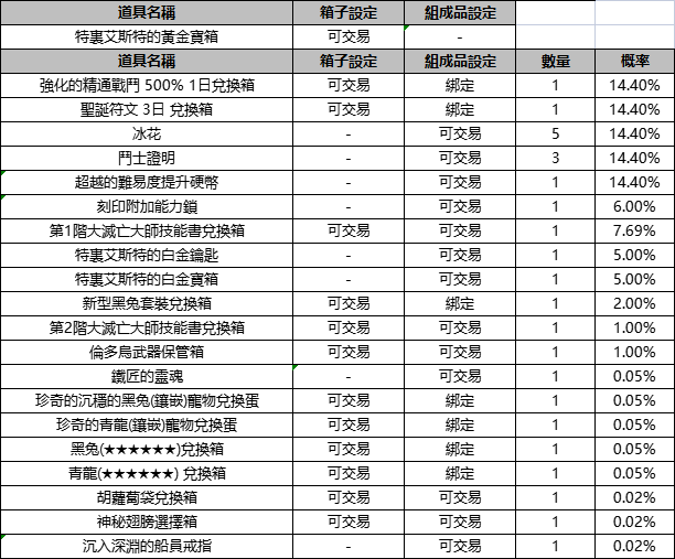 2.《特裏艾斯特的白金寶箱》組成品更新