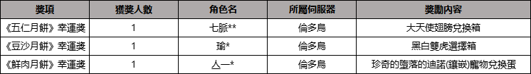 恭喜以上獲獎玩家!後續我們會準備更多更有趣的活動供大家參與。