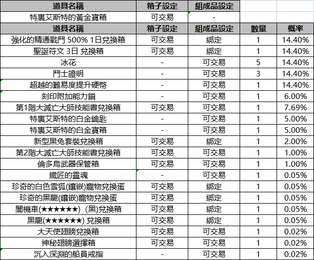 2.《特裏艾斯特的白金寶箱》組成品更新