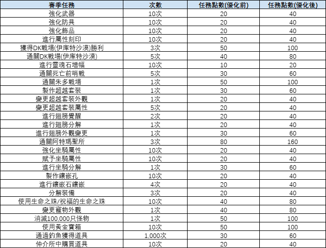 - 每日/賽季任務完成時獲得的<任務點數>將大幅增加。