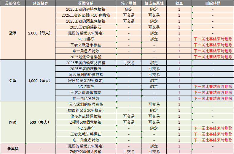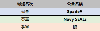 讓我們恭喜以下獲得【2025王者之戰】榮耀的公會隊伍!