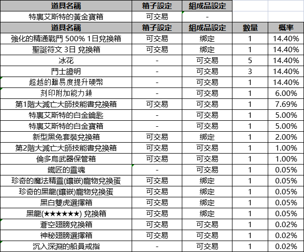 2.《特裏艾斯特的白金寶箱》組成品更新