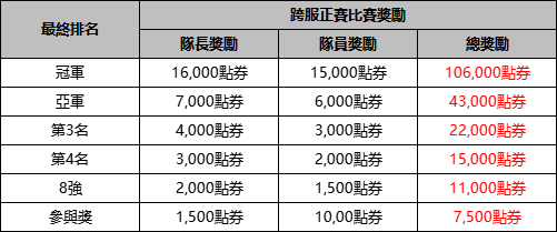 - 各參賽者的比賽用帳號內角色,將按照參與【伺服器選拔賽】時所使用的角色提供。