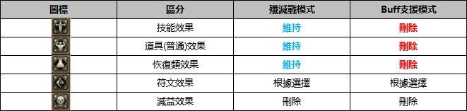 ※ Buff支援模式下,正在使用的【道具/恢復類】效果會在入場時全部刪除,僅應用所選Buff。