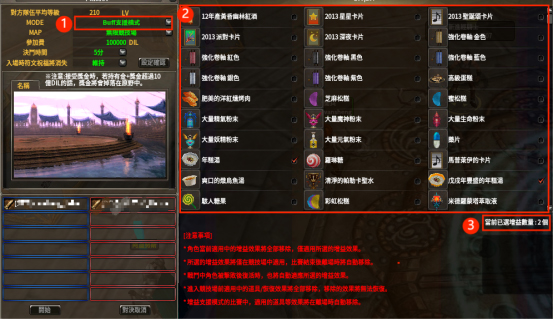※ 通過顯示的Buff選擇窗口最多可選擇10種Buff後入場。