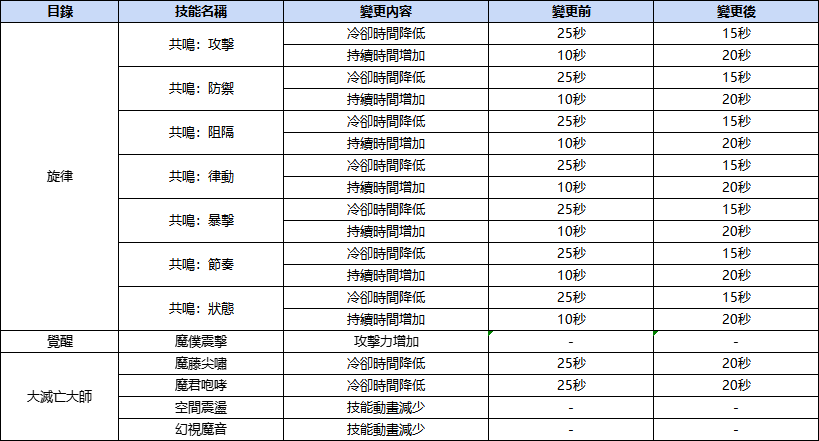2.各職業技能效果調整