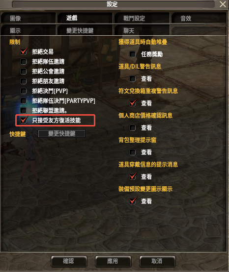 - 當角色死亡時,可以設置允許對其使用復活技能的對象。
