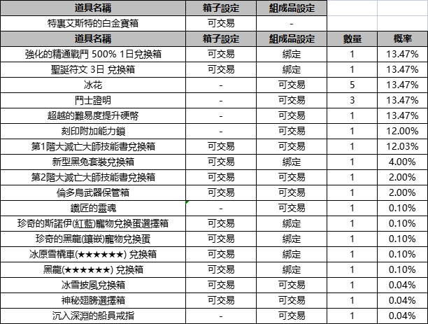2.《特裏艾斯特的白金寶箱》組成品更新