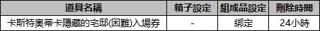 [公告] 開啟:副本《卡斯特奧蒂卡隱藏的宅邸(困難)》