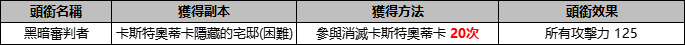 ※ 【黑暗審判者】稱號的計數將在擊敗卡斯特奧蒂卡首領時,為所有存活的小隊成員增加。