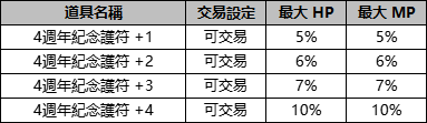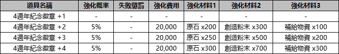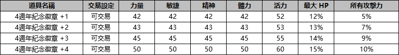 ※ 同時裝備[4週年紀念護符]與[4週年紀念徽章]可觸發上述效果。