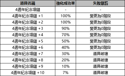 ※【4週年紀念項鏈/戒指】物品從+5強化開始賦予SET效果。(同時裝備時獲得SET效果)