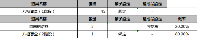 [公告] 【遊戲商城】:八極寶盒(1階段)