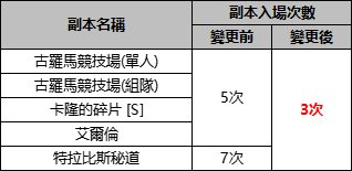 [公告] 優化:部分副本入場次數