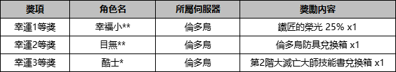 恭喜以上獲獎玩家!後續我們會準備更多更有趣的活動供大家參與。