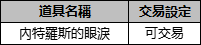 - 在<被遺忘的遇難船 (普通)> 副本的最終BOSS <內特羅斯>的掉落道具中,新添加《內特羅斯的眼淚》道具。