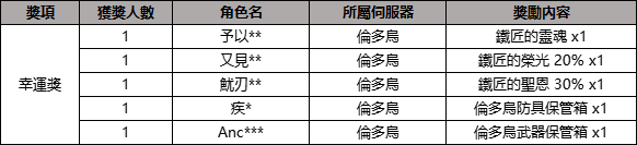 恭喜以上獲獎玩家!後續我們會準備更多更有趣的活動供大家參與。