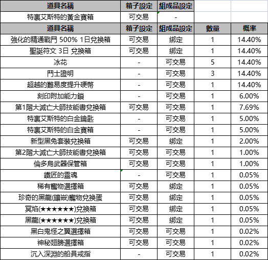 2.《特裏艾斯特的白金寶箱》組成品更新