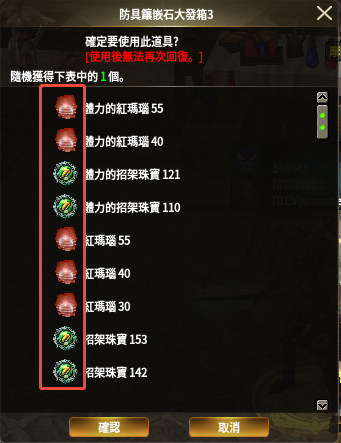 (3)禮包(可在組成品中所有道具)