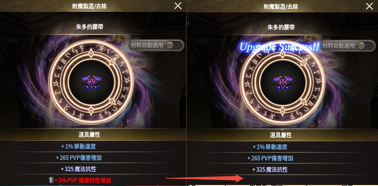 ※ 附魔功能:可通過附魔功能,對裝備進行階級(動態)屬性的添加與消除。