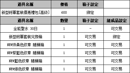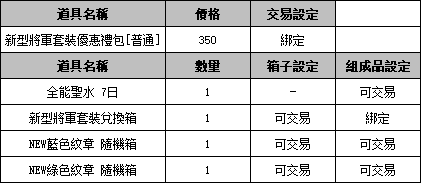[公告] 【遊戲商城】 新型將軍套裝優惠禮包
