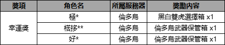 ※ 道具已於4月14日發送至獲獎者角色郵箱中。
