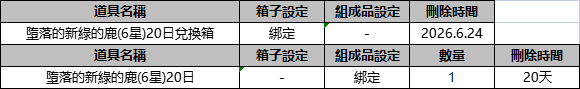 【墮落的新綠的鹿(6星)20日兌換箱】