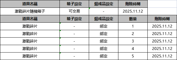 ※ 11月5日維護期間進行統計時,將僅統計角色背包中的《激戰碎片》持有數。