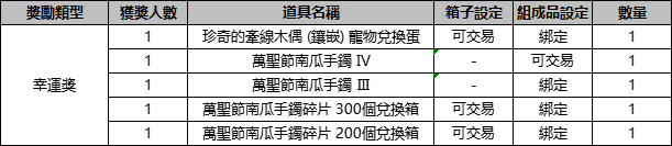 - 持有<萬聖節慶典證明>10個以上的角色可參與“幸運獎”的隨機抽取。