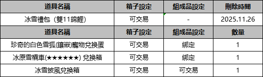 ※ 超過刪除時間也未領取的道具將在維護時一併刪除。