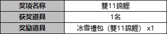 ※ 【雙11錦鯉】的獲獎人數為1名,且與購買道具的數量無關,每位購買者的獲獎概率相同。