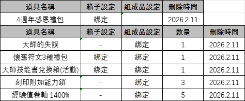 ※ 超過未上傳至遊戲內或未使用時將統一刪除。