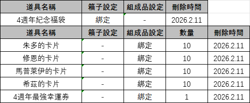 ※ 帳號內多個角色持有《4週年最強幸運券》時,將取數量之和視為【帳號最終持有數量】。