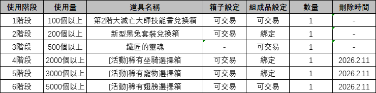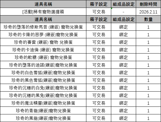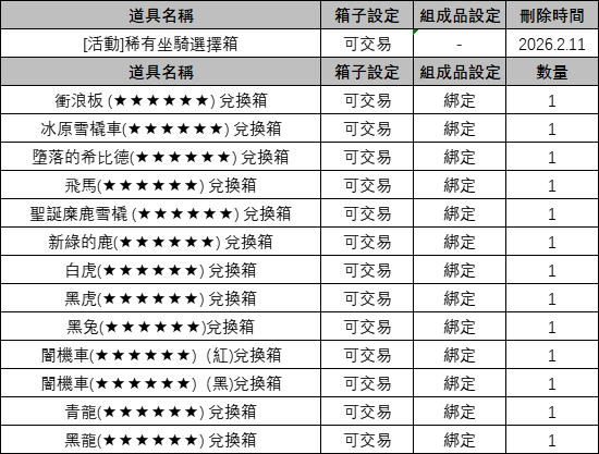 ※ 以上活動道具刪除時間為2026年2月11日,超過未上傳至遊戲內或未使用時將統一刪除。