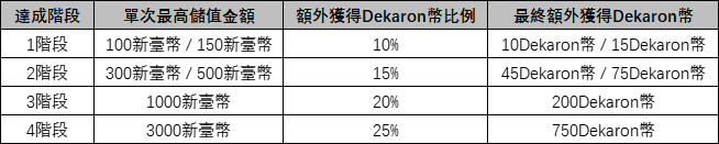 【達成階段Dekaron幣獎勵】