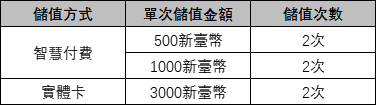 ※ 單次儲值金額需要超過(含)100新臺幣才視爲參與活動。