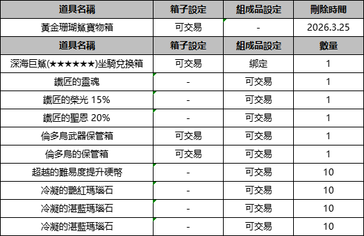 【活動日期】:2026年3月4日 維護後 ~ 2026年3月18日 維護前
