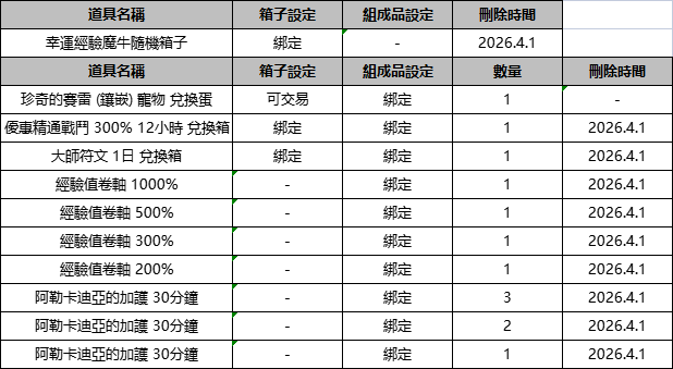 【活動日期】:2026年3月11日 維護後 ~ 2026年3月25日 維護前