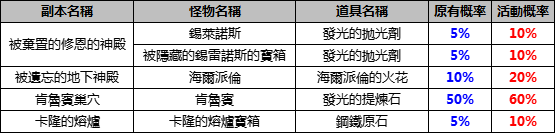 1.活動期間《修恩的耳環》製作所需材料的副本掉率最高增加至2倍。
