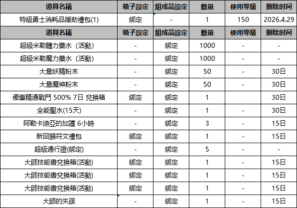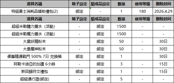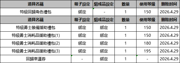 ※ 【特級回歸角色禮包】將自動發送至角色郵箱。