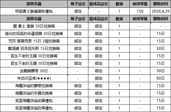 【活動日期】:2026年3月25日 維護後 ~ 2026年4月8日 維護前