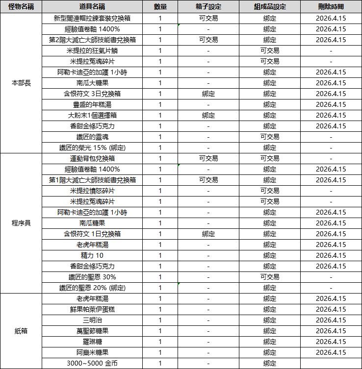 【活動日期】:2026年3月25日 維護後 ~ 2026年4月8日 維護前