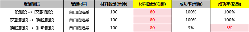 1.活動期間降低進行“翅膀覺醒”所需消耗的材料數量,並提升“翅膀覺醒”的成功率。