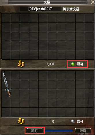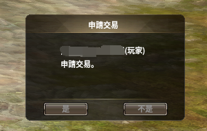 (2)申請交易後需要等待目標角色確認,確認通過時開啟個人交易介面。目標確認取消或等待時間超時時,將取消本次交易申請。