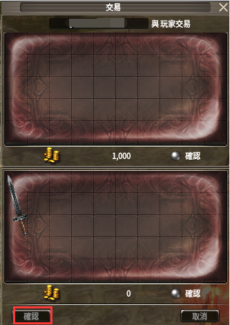(8)當雙方皆完成登錄並點擊確認後,將進入交易的最終確認階段。此過程中將無法等待道具,僅能選擇“確認”來完成交易,或選擇“取消”來取消交易。(已經確認將完成本次交易,還請務必注意查看交易內容。)
