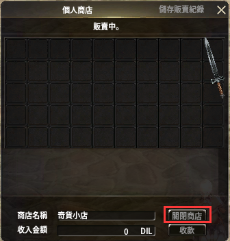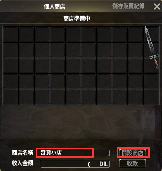 ※ 開啟個人商店後角色將無法移動。