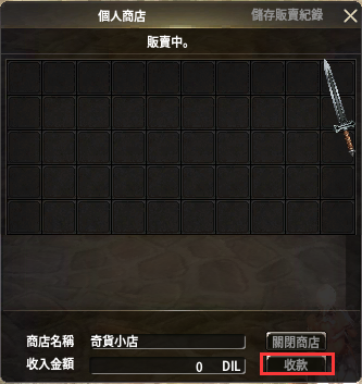 (2)通過出售道具獲得的DIL,將顯示在“收入金額”中。可通過點擊“回收”,將個人商店中的DIL轉入角色背包中。