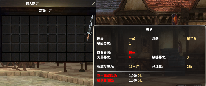 - 出售金:通過出售道具獲得的DIL。