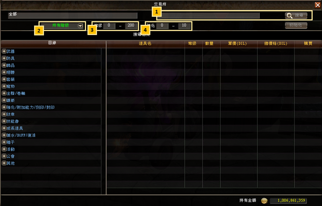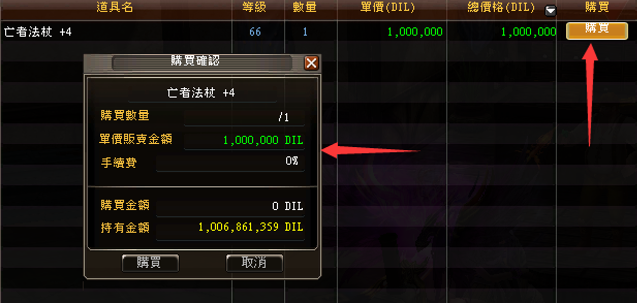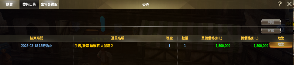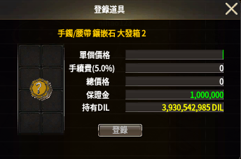 (2)在“委託出售”登錄道具時,需要消耗100萬DIL保證金。